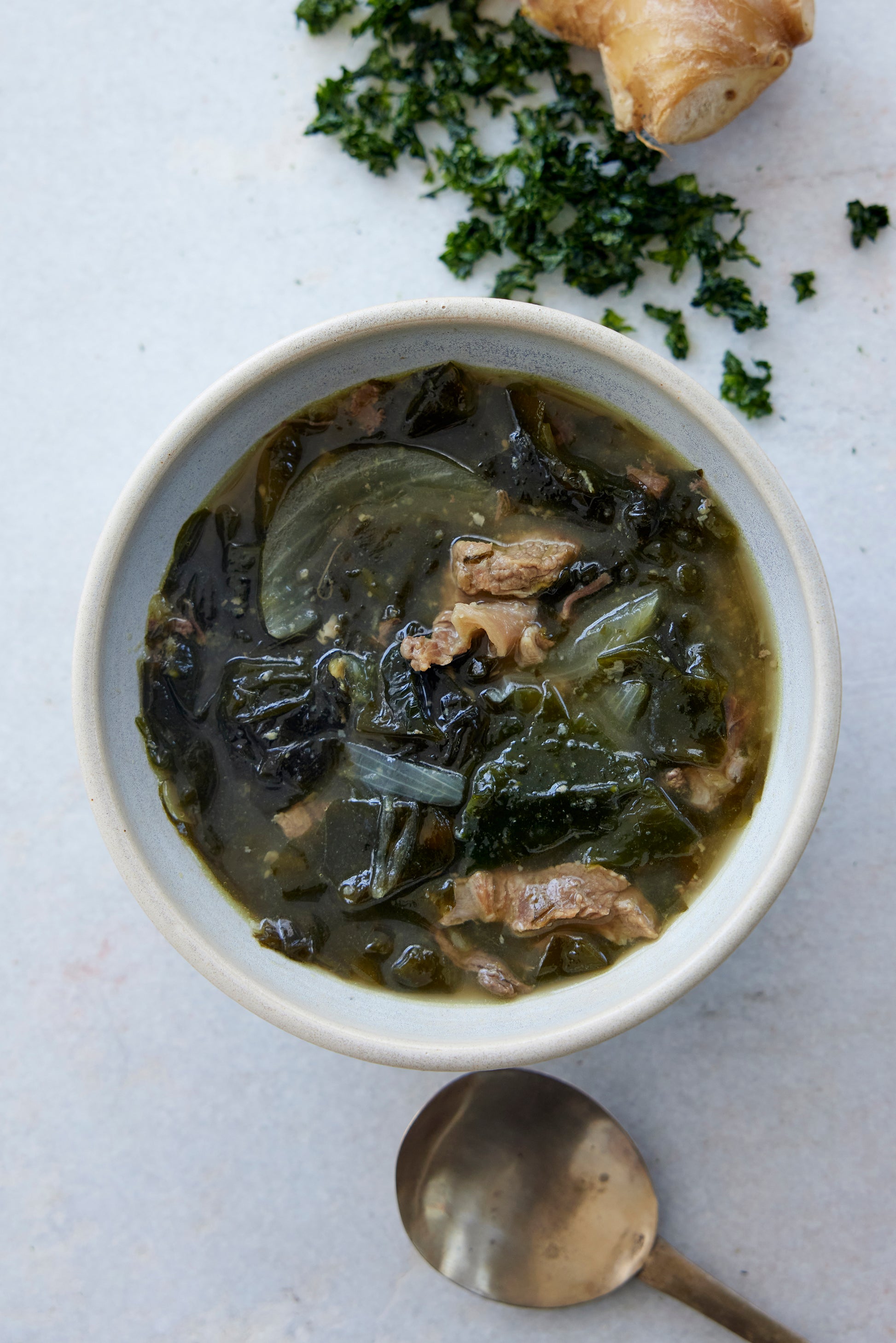 In Korea, this soup is eaten daily for a full month after childbirth—a ritual of nourishment and care. Our aosa seaweed, rarely found in the U.S., is shipped directly from Japan to preserve its authentic flavor and quality. In Eastern tradition, seaweed supports circulation while beef replenishes energy and blood. It’s also served on birthdays, a quiet gesture of gratitude to the mothers who brought us into the world.